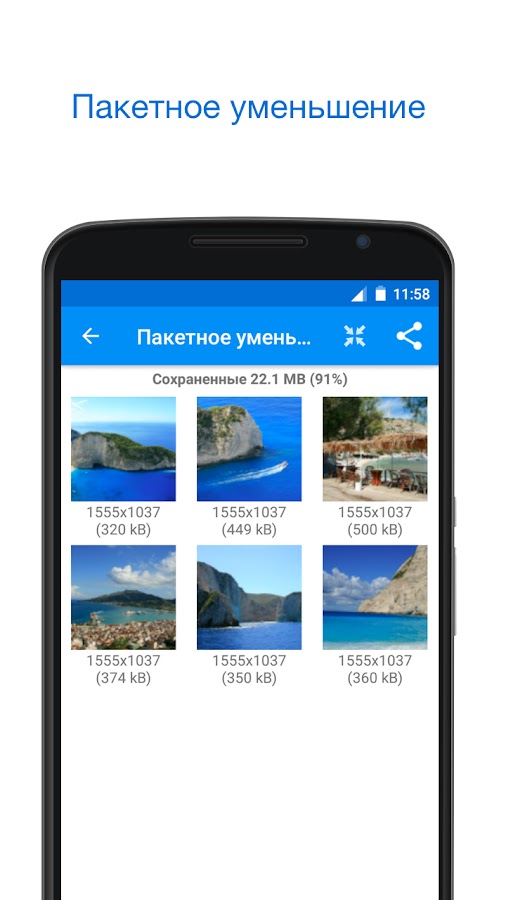 Если у вас есть камера высокого разрешения на смартфоне с тысячами мегапикселей на дюйм это прекрасно, но если вы не можете выслать ваши изображения своим друзьями, вы могли бы бросить свой телефон и зарядку в почтовую коробку и выслать своему другу, верно? Никогда больше! Сжимайте и делитесь своими фото в одно мгновение! Фото ваших детей, концертов, и даже того, кому не уйти… Уменьшайте и делитесь ими!