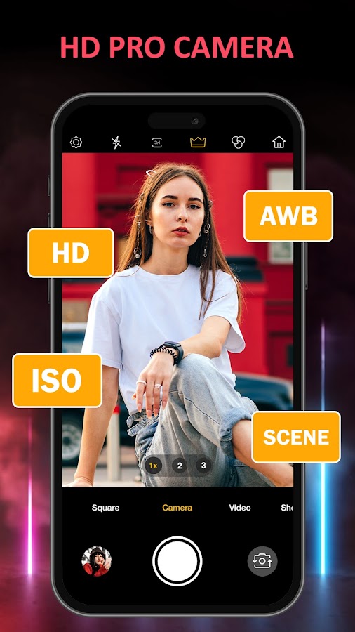 ★ «HD Камера и Фильтр» простое в использовании, но при этом многофункциональное приложение, позволяющее снимать высококачественные фото и видео.