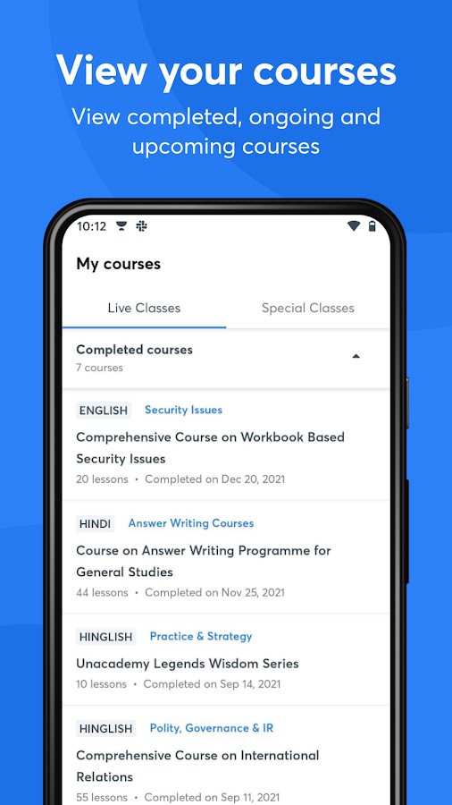 📖 Ваши курсы: просмотр завершенных, текущих и предстоящих курсов в вашем приложении. Вы также можете планировать и проводить специальные занятия на ходу.