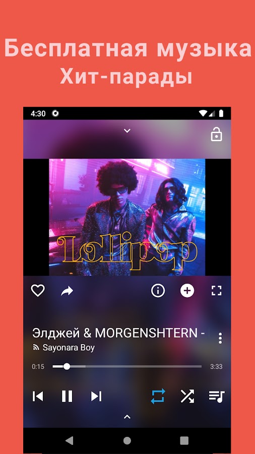 • Популярная музыка и альбомы: просто и бесплатно — на смартфоне можно слушать песни, плейлисты и альбомы любых исполнителей в режиме перемешивания.