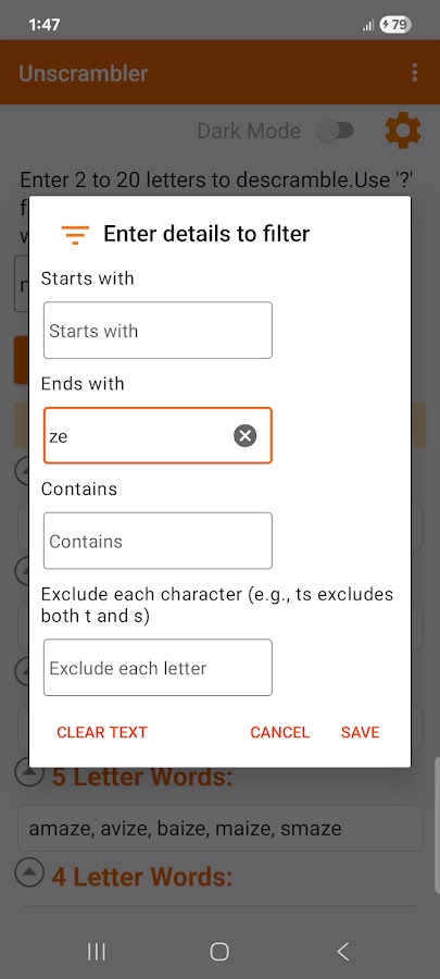 Word Unscrambler — это шпаргалка, которая расшифровывает все слова длиной от 2 до 20 букв. Если вы когда-нибудь застряли в разгадывании перепутанных слов, то Unscrambler — это приложение для вас.