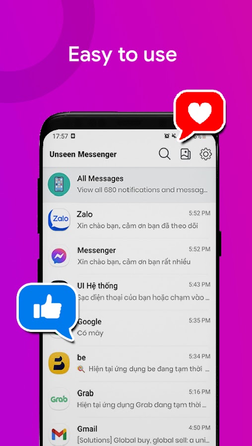 Unseen & View Deleted Message невероятно прост в использовании, с простым и интуитивно понятным интерфейсом, который упрощает доступ к необходимой информации. Приложение также разработано, чтобы быть легким и эффективным, занимая очень мало места для хранения и вычислительной мощности на вашем устройстве.