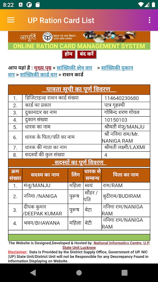 Отказ от ответственности: это приложение предоставляет данные с веб-сайта https://fcs.up.gov.in/ и https://nfsa.up.gov.in/Food/citizen/Default.aspx, который является общедоступным веб-сайтом.