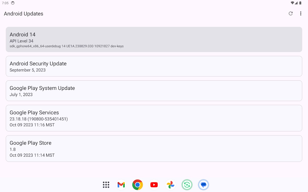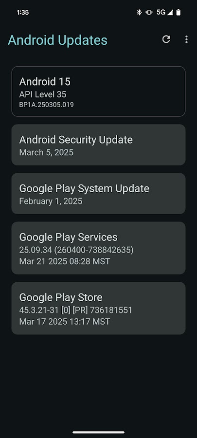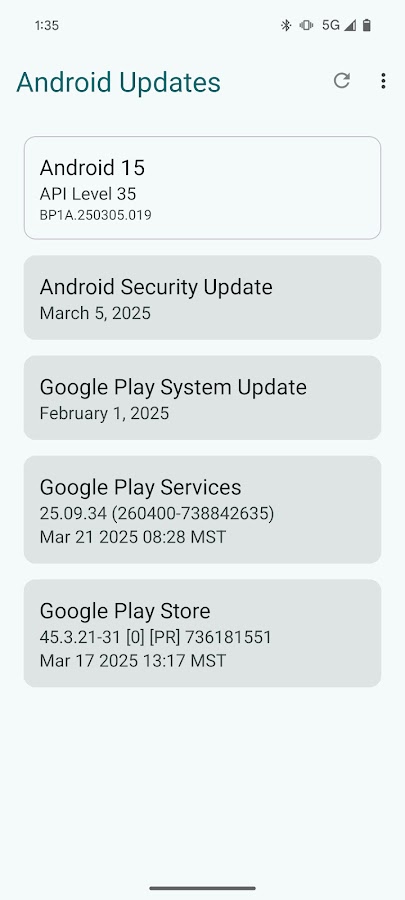 Удобно и легко просматривайте текущий патч безопасности вашего устройства Android, версию обновления системы Google Play, версию GMS и Play Store в одном месте, а затем легко проверяйте каждое из них на наличие доступных обновлений. Постоянное обновление этих элементов повышает безопасность и стабильность устройства.