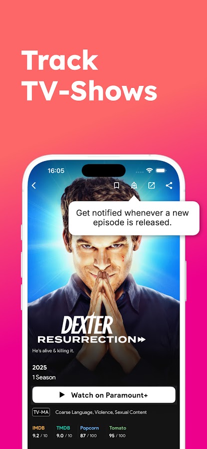 Upflix предлагает два типа списков: список желаний и список сериалов, на которые вы подписаны. Если вы смотрите «Ведьмака» на Netflix и «Одни из нас» на Max, вы можете добавить оба сериала и получать уведомления о выходе новой серии или сезона. Так вы ничего не пропустите.