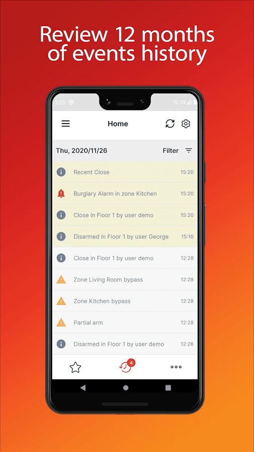 • Получайте уведомления в режиме реального времени для выбранных событий.