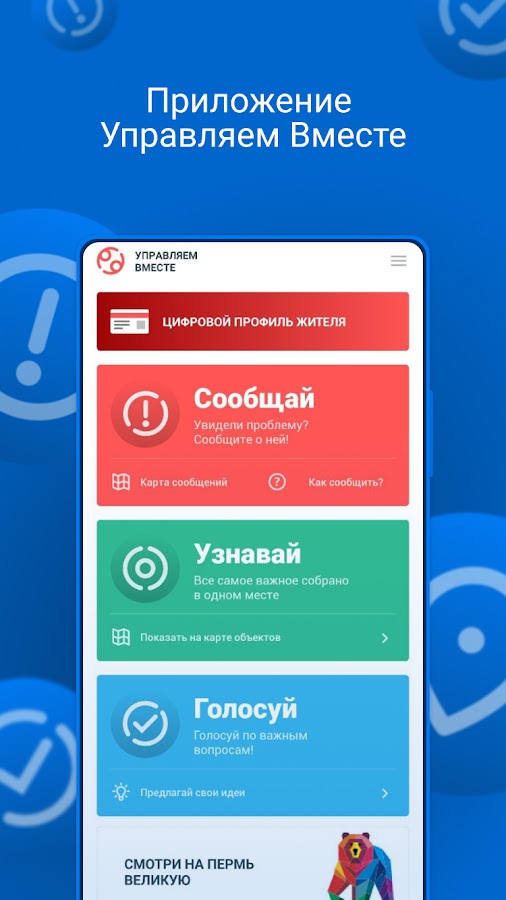 С помощью мобильного приложения «Управляем вместе» жители Перми и Пермского края могут принять участие в реализации Программы развития Пермского края.