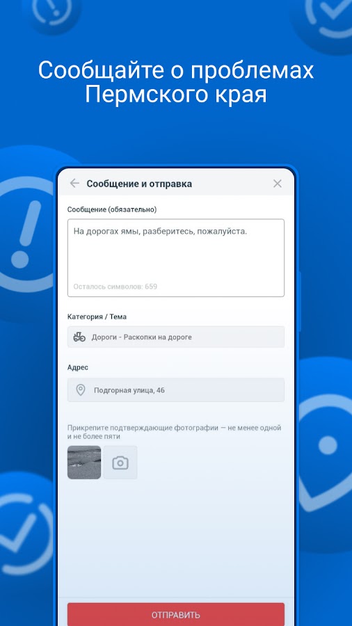 Для того чтобы воспользоваться всеми возможностями приложения достаточно пройти простую регистрацию, после чего Вы сможете влиять на качество выполняемых работ, отправлять обращения и получать ответ в течение 8 дней.