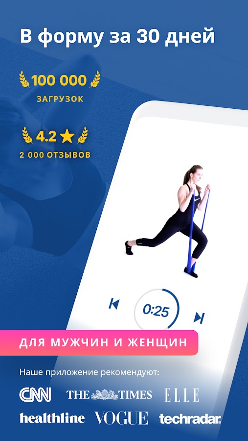 Упражнения с эластичной лентой — это спортивное видео-приложение, которое позволит вам тренироваться, используя эластичную ленту — эспандер.
