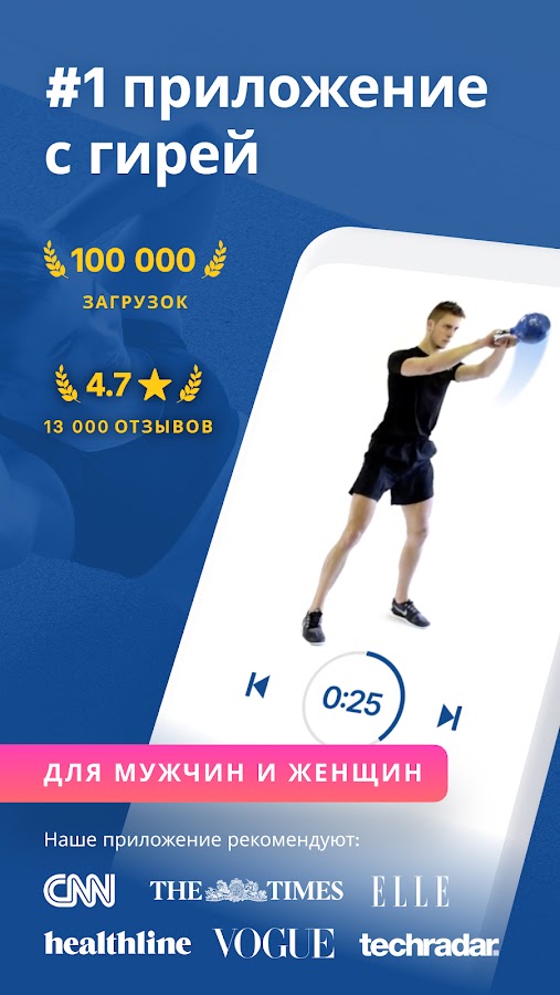 Упражнения с гирями — это спортивное видео-приложение, которое позволит построить полноценную тренировку с использованием гирь.