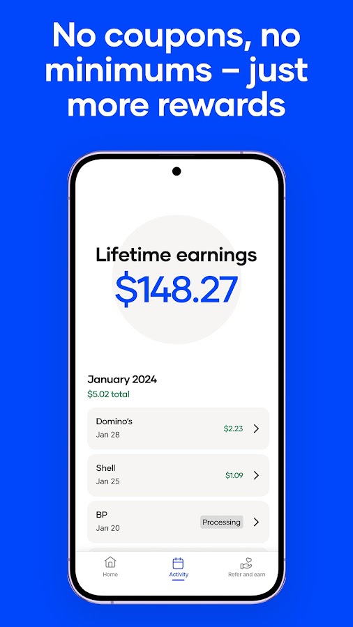 Зарабатывайте кэшбэк, получайте скидки и экономьте деньги в продуктовых магазинах, на заправках и ресторанах. Сканируйте квитанции, чтобы получать вознаграждения за бензин и топливо, купоны на еду и узнавать цены на бензин рядом с вами.