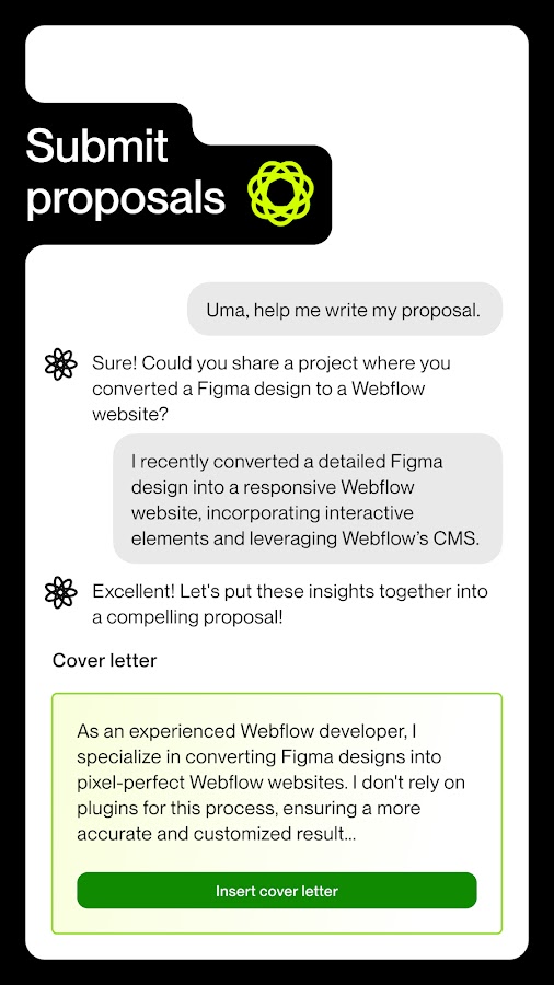 Управляйте своей работой на ходу. Независимо от того, нанимаете ли вы сотрудников, работаете фрилансером или делаете и то, и другое, вы можете публиковать вакансии, отправлять предложения, сообщения, отслеживать проекты и управлять контрактами — всё в одном приложении. Этот унифицированный интерфейс экономит ваше время и помогает сосредоточиться на самом важном: качественном выполнении работы. Всё необходимое в одном мощном и удобном приложении, созданном для поддержки вашего рабочего процесса.
