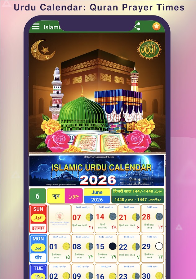 Лучший мусульманский календарь на урду на 2026 год, исламский календарь на 2026 год, календарь Хиджры 1447-1448 годов,
