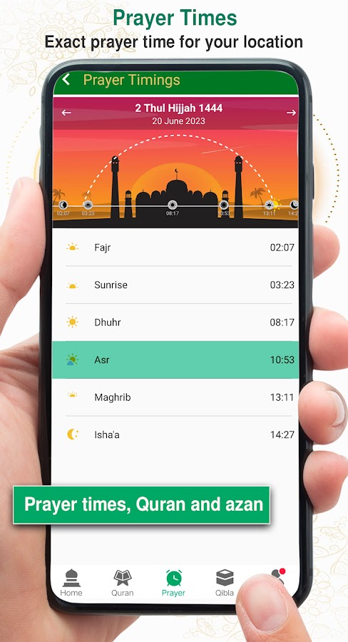 * Ежедневное время молитвы — уведомляет вас, когда пора молиться