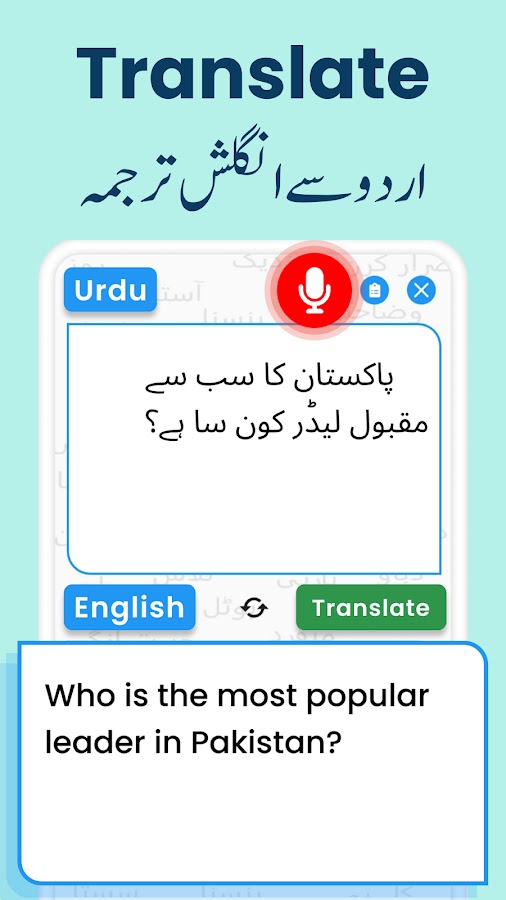 Переводчик и словарь с английского на урду решит все ваши проблемы и потребности, связанные с переводом с английского на урду и с урду на английский. Загрузите приложение сейчас и наслаждайтесь переводом с английского на урду, переводом с урду на английский, словарем с урду на английский и приложением со словарем с английского на урду на своем телефоне.