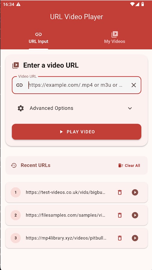 ✓ Недавние URL-адреса: легкий доступ к ранее воспроизведенным видео.