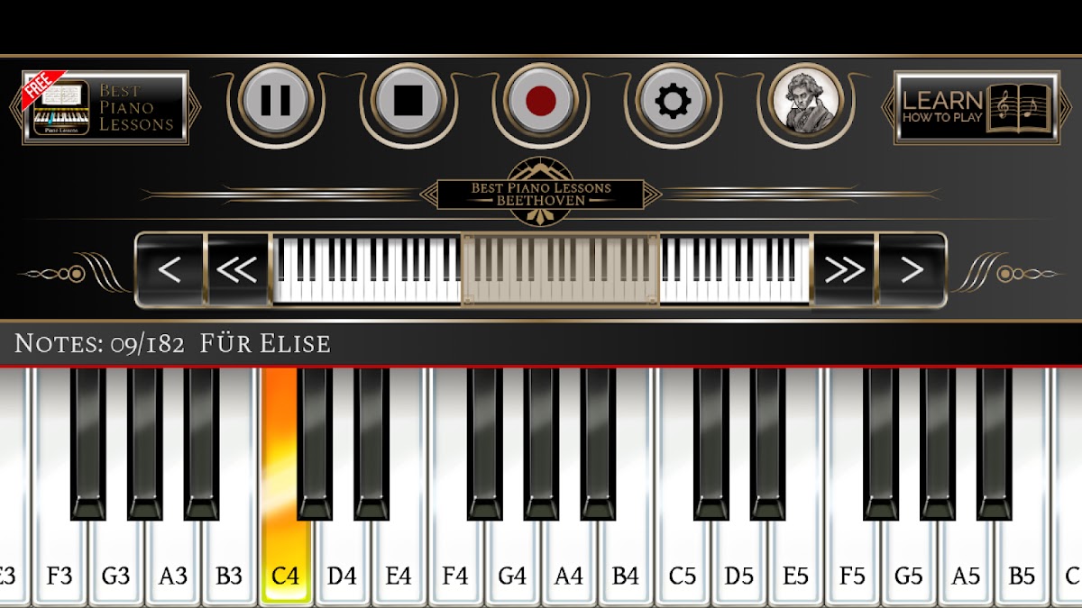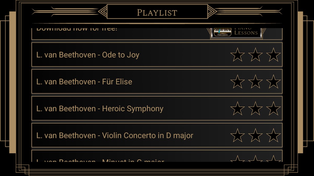 Do you want to learn the piano? Now it’s possible with Best Piano Lessons Beethoven application. This music app is very simple to use. You can choose from many songs!