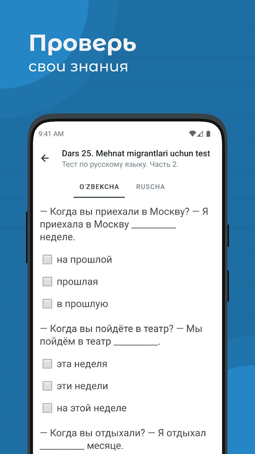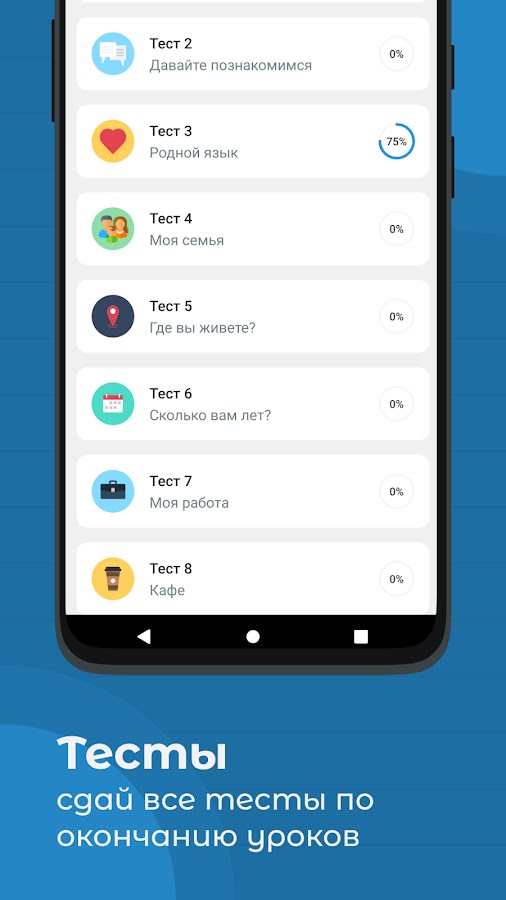 Это приложение состоит из 30 уроков на русском языке. Вы можете сдать тесты и проверить свои знания по окончанию каждого урока.