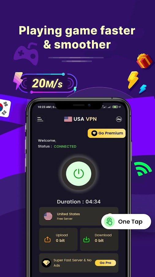 Vpn USA позволяет вам получить IP-адрес США в один клик и разблокировать доступ к запрещенным сайтам и приложениям. Безопасное и анонимное соединение обеспечивает технология подключения OpenVPN с ключом OpenSSL 2048 бит. Быстрое подключение