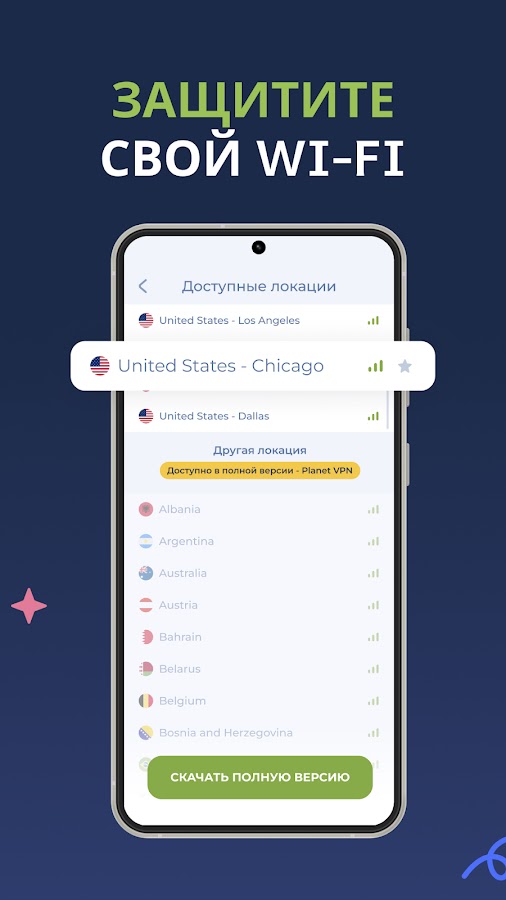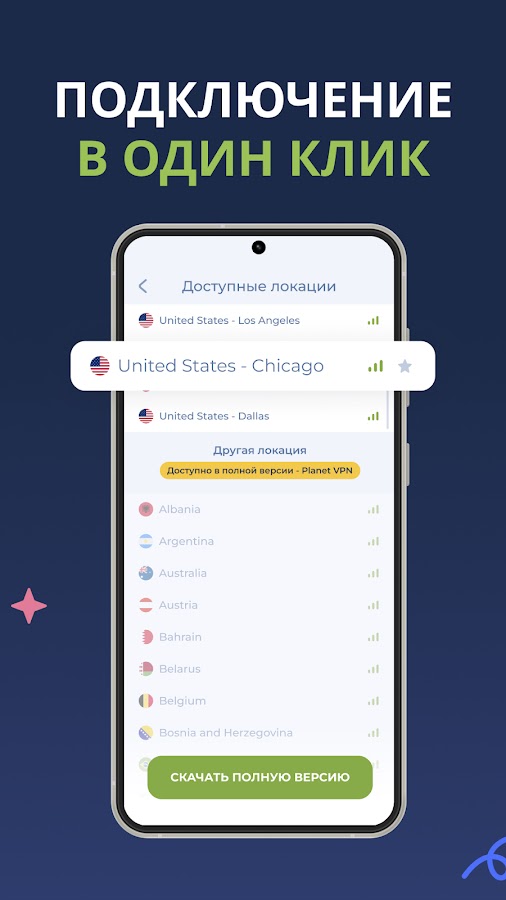 Представляем бесплатный USA VPN от Planet VPN Lite – это ваше идеальное решение для безопасного и безлимитного доступа в интернет. Скачайте наше безлимитный ВПН США и откройте для себя возможности 4 американских серверов, при этом мы продолжаем расширять нашу сеть серверов. Никаких сложностей, никаких ограничений – только безупречная связь для улучшения вашего онлайн-опыта.