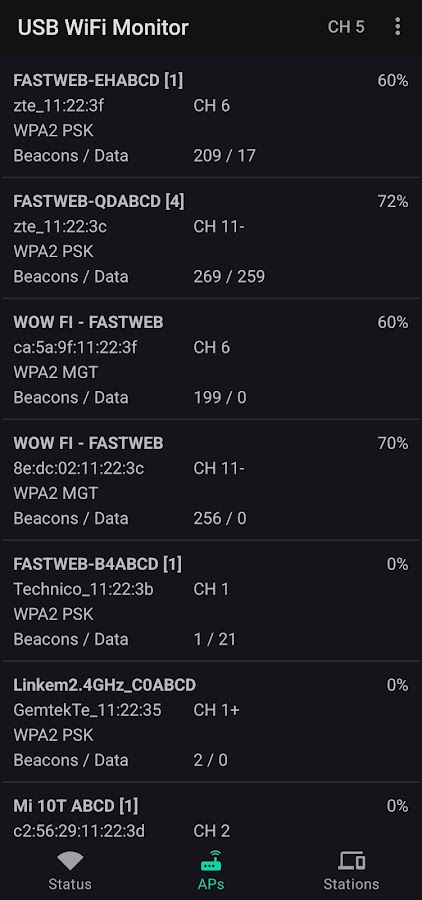 Это приложение позволяет захватывать необработанные кадры WiFi в диапазоне 2,4 ГГц на стандартных ядрах без рута. Забудьте о настройке драйвера режима монитора на вашем ПК и начните использовать свое устройство Android!
