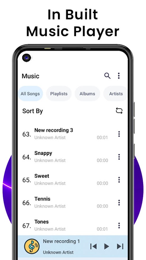 Это приложение также работает как встроенный MP3-плеер с плавным и высококачественным воспроизведением звука. Наслаждайтесь всеми своими песнями благодаря встроенному аудиоплееру, поддерживающему все популярные музыкальные форматы. Удобный плеер позволяет легко просматривать, воспроизводить и упорядочивать музыку.