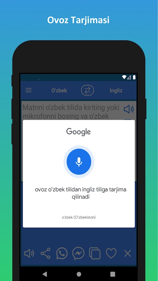 ✓ 3. Голосовой набор на узбекском языке. Голосовой перевод с узбекского на английский.