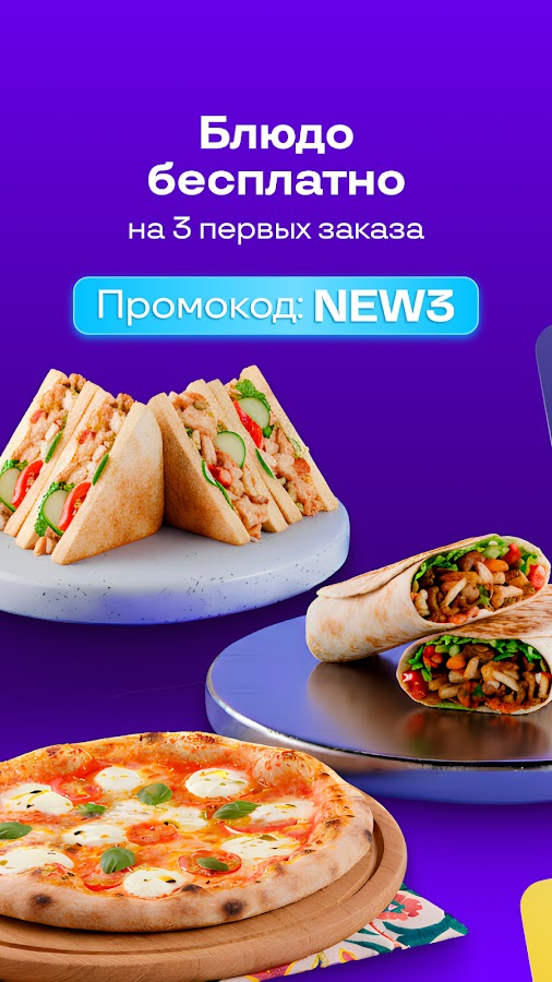 В нашем приложении всегда можно найти блюда по акции 1+1, 2+1, а также скидки и промокоды, как для новых, так и для постоянных пользователей. Заказывайте любимые блюда, продукты и товары выгодно.