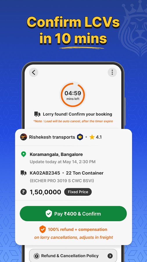• Бронируйте легкие коммерческие грузовики, такие как Tata 407, Dost, Eicher 1110, пикапы Bolero, контейнеры и прицепы SXL и MXL PAN India