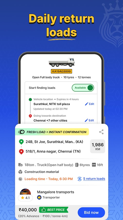 • Бронируйте грузовики по вашей цене по всей Индии
