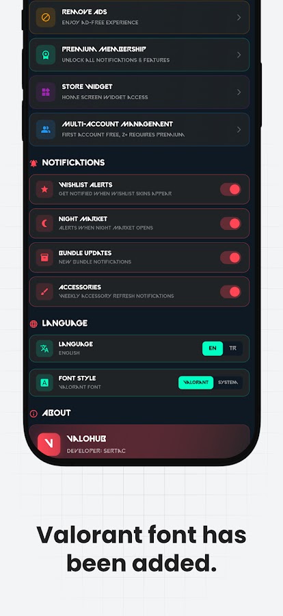 ValoHub — неофициальное приложение-компаньон для игроков Valorant. Отслеживайте свой ежедневный магазин, следите за Ночным рынком, общайтесь с друзьями и многое другое — всё в одном месте.