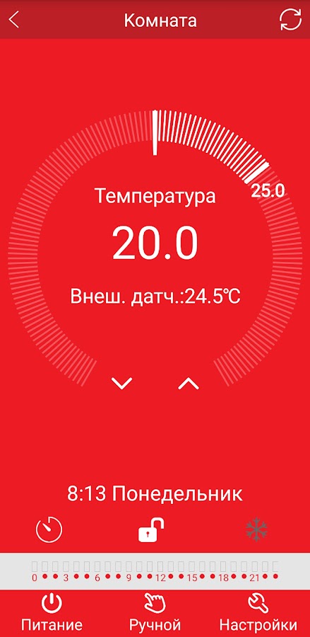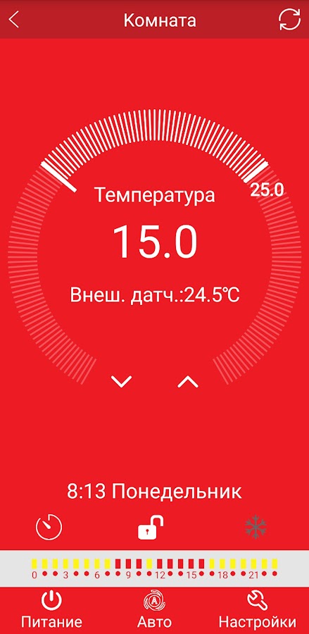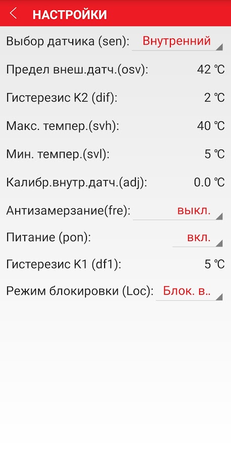— быстрая настройка параметров работы термостата: синхронизация даты/времени, недельное программирование температурных режимов, выбор датчика, настройка уставок;