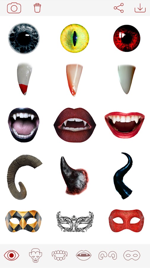 2. Выберите наклейку и фильтр вампира с помощью инструмента редактирования фотографий Vampire Camera!