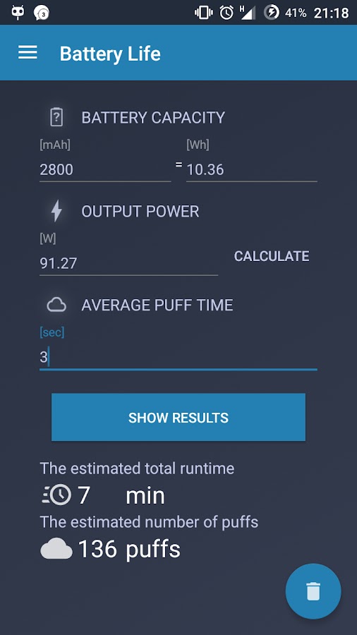 Калькулятор аккумуляторов: Позволяет рассчитать примерное время работы ваших механических модов и количество затяжек