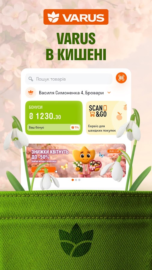 Хотите узнать цену продукта или добавить его в свою корзину? Используйте сканер приложения, сканируйте штрих-код продукта и добавляйте продукты в свою корзину, а с помощью QR – кода вы можете осуществить быструю оплату на кассе. VARUS – это приложение, чтобы делать покупки в маркете было еще легче!