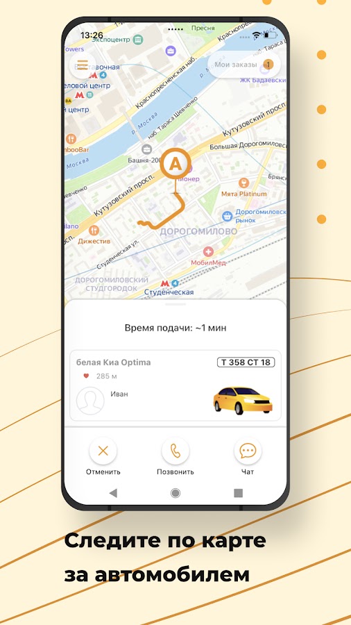 Приложение само автоматически определит адрес подачи (если включен GPS).