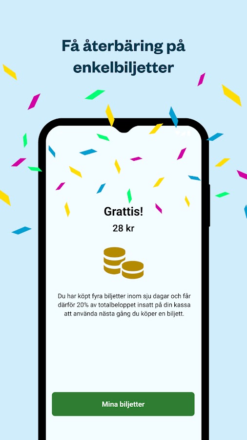 — Возможность купить льготную поездку или деловую поездку, если ваш работодатель использует Västtrafik Företag.