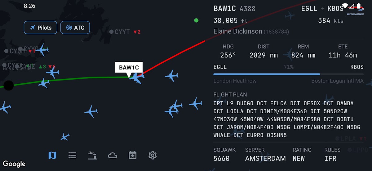 — карта, отображающая всех пилотов и авиадиспетчеров, подключенных в настоящее время к сети VATSIM.