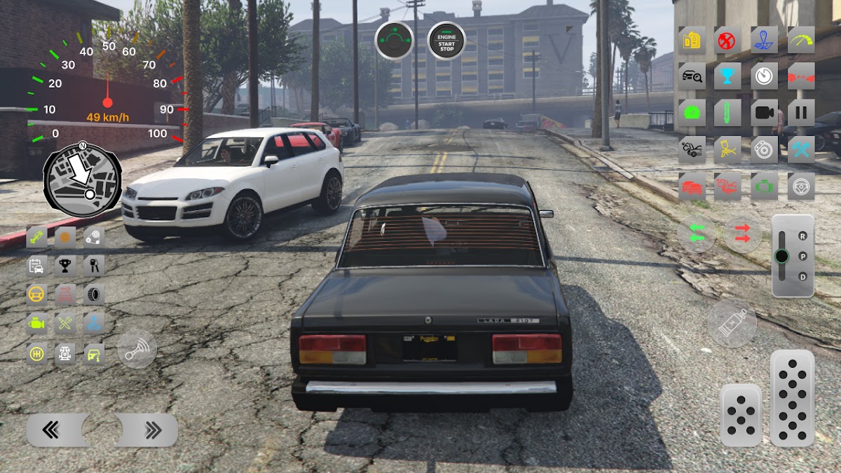 Устраивайте гонки на трассе вместе с другими автомобилями и внедорожниками. А так же вам необходимо будет уйти от погони автомобилями ДПС. Суета и настоящий дрифт на дороге! Зарабатывайте награды в этой игре, выполняйте экстремальные автомобильные трюки и другие интересные задания. В городском трафике вам необходимо будет уйти от погони автомобиля Лада ДПС. Получайте удовольствие от езды по русской деревне или опер сити. Выполняйте дрифт миссии, краш тест и поднимайтесь в рейтинге гонщиков! Русские тачки готовы продемонстрировать всю свою мощность и скорость на гоночной трассе.🔥