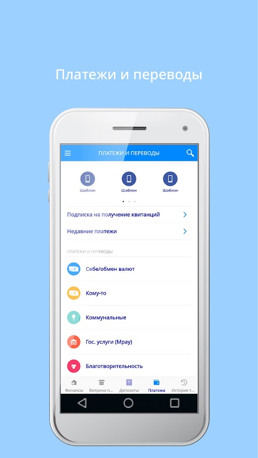 • Оплачивать государственные услуги MPay: за детский сад, штрафы ГАИ, и т.д.