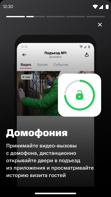 Принимайте видео-вызовы с домофона, дистанционно открывайте двери в подъезд из приложения и просматривайте историю визита гостей