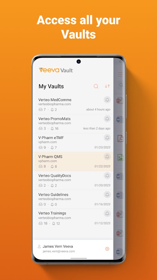 Получите доступ к своим хранилищам на ходу с помощью приложения Vault Mobile. Veeva Vault — это проверенная облачная платформа для медико-биологической отрасли.