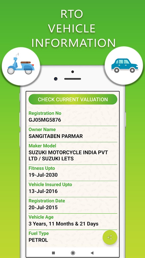 Знайте имя владельца транспортного средства, текущую оценку и другие детали.