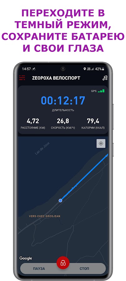 * Устанавливайте личные рекорды по времени езды на велосипеде;
