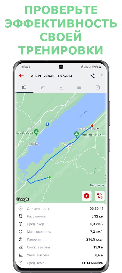 * Информация о тренировке в реальном времени на карте с точными GPS-координатами;