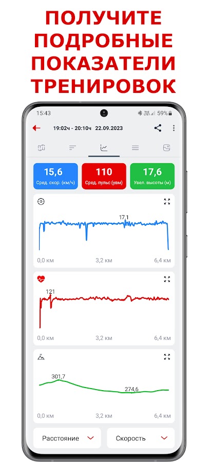 * Рассчитывайте расстояние и продолжительность вашего маршрута, скорость и объем калорий – в режиме реального времени и с высокой точностью;