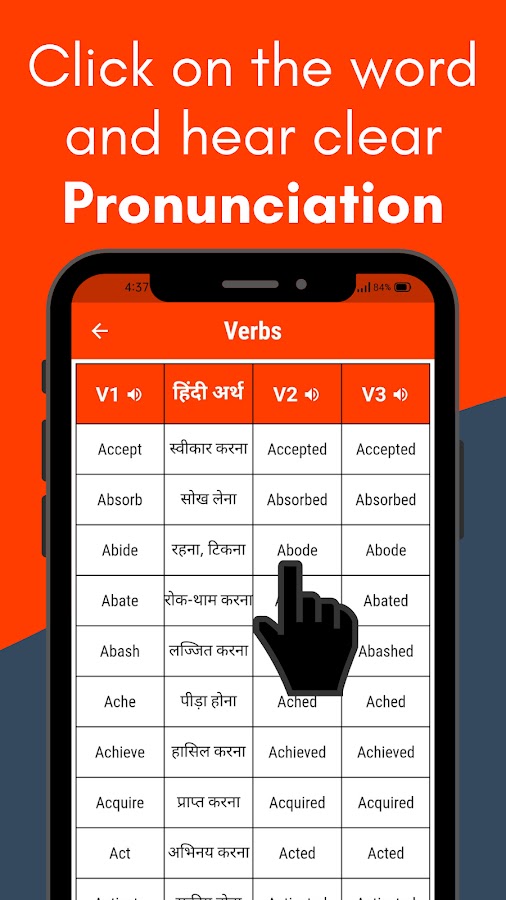 Вы испытываете трудности с пониманием форм глаголов? Вам нужен полный список форм глаголов со значениями на хинди? Вы заинтересованы в изучении основных английских глаголов, таких как V1, V2 и V3? Если вы ищете приложение-словарь с формами глаголов от А до Я, не ищите дальше!