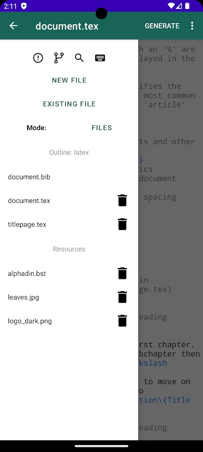 VerbTeX — это бесплатный редактор LaTeX для совместной работы на вашем устройстве Android. Он позволяет создавать и управлять проектами LaTeX непосредственно на вашем устройстве Android и генерировать PDF-файлы в автономном режиме (Verbnox) или онлайн (Verbosus).