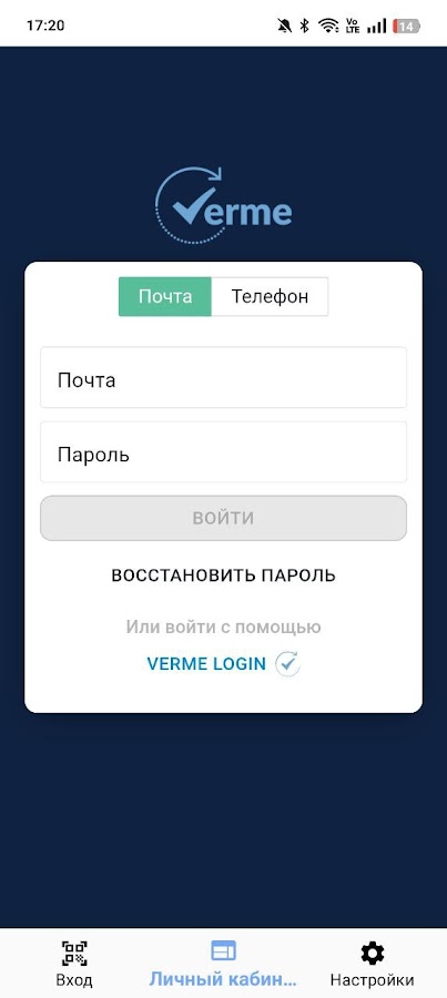 Мобильное приложение ООО «ВЕРМЕ» позволяет быстро и безопасно войти в личный кабинет с помощью сканирования QR-кода.
