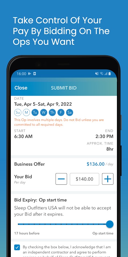 Ваш профиль оператора отображается компаниям. Ваш профиль — это основной способ, с помощью которого компании решают, какие ставки выбрать для заполнения своих операций. Пожалуйста, убедитесь, что все ваши соответствующие навыки и сертификаты соответствуют действительности, чтобы максимизировать вашу конкурентоспособность при размещении ставок на Ops.